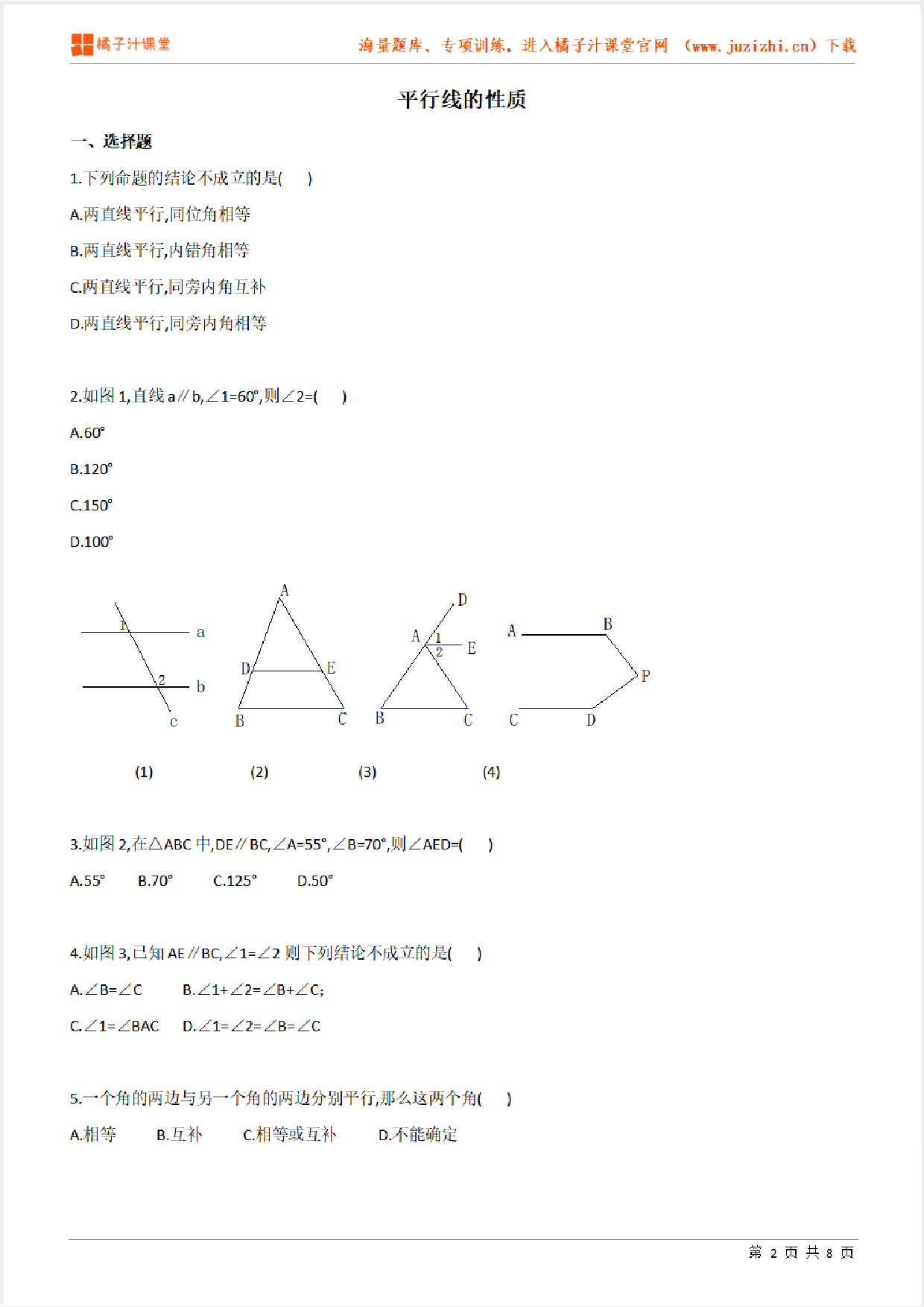 这份资料:【北师大版数学】八年级上册第七章《平行线的性质》综合练习由【橘子汁课堂】整理提供,各位家长老师可直接在线下载,下载后使用打印机打印使用。也可以保存下方练习题图片打印,提供给学生可直接练习。 同时,我们也提供了手机端练习工具,可以使用手机扫描右侧卡片二维码,进入我们的题库小程序练习。