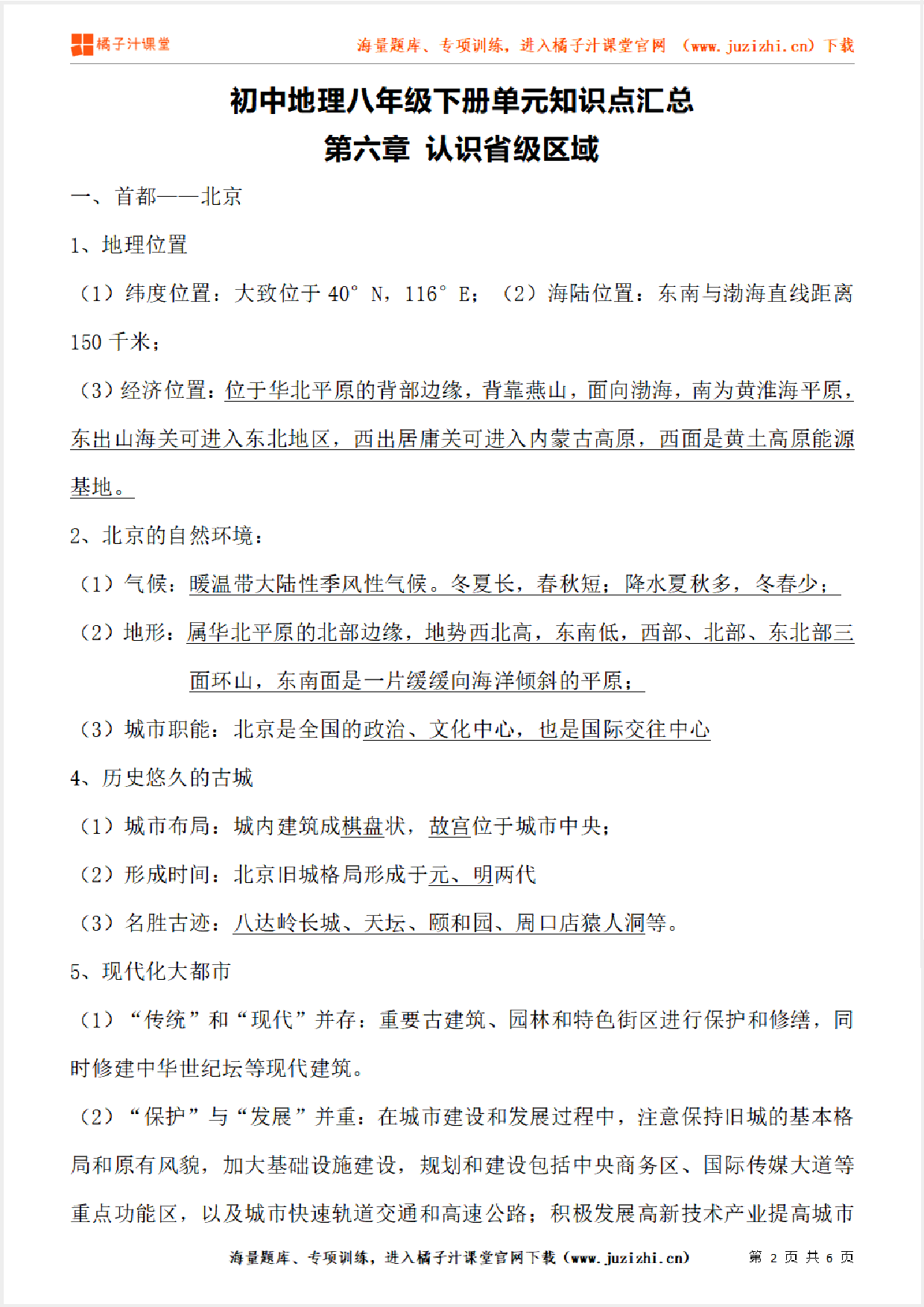 这份资料:八年级下册初中地理《第六章 认识省级区域》单元知识点由【橘子汁课堂】整理提供,各位家长老师可直接在线下载,下载后使用打印机打印使用。也可以保存下方练习题图片打印,提供给学生可直接练习。 同时,我们也提供了手机端练习工具,可以使用手机扫描右侧卡片二维码,进入我们的题库小程序练习。