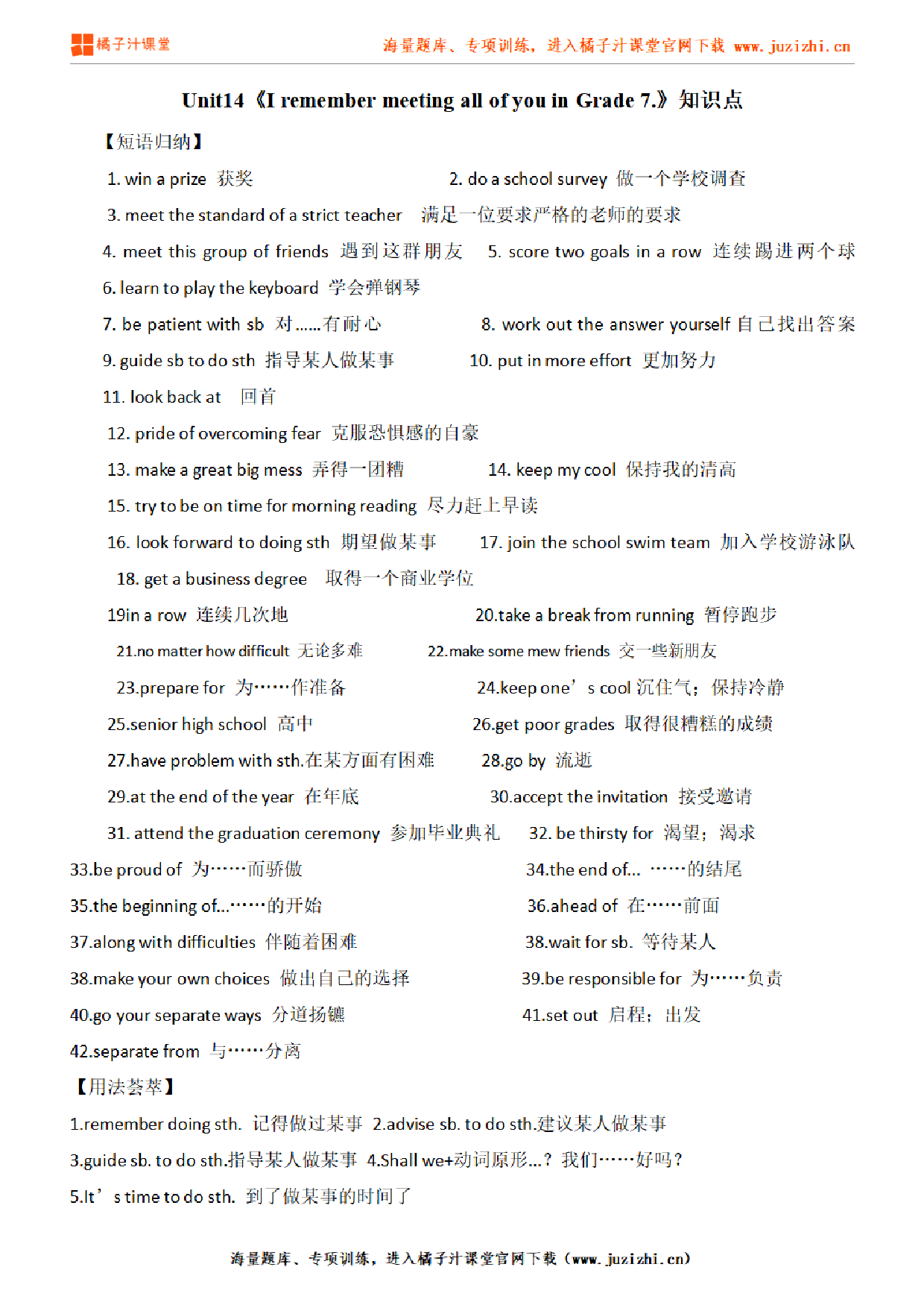 这份资料:人教版初中英语九年级上册Unit14知识点由【橘子汁课堂】整理提供,各位家长老师可直接在线下载,下载后使用打印机打印使用。也可以保存下方练习题图片打印,提供给学生可直接练习。 同时,我们也提供了手机端练习工具,可以使用手机扫描右侧卡片二维码,进入我们的题库小程序练习。