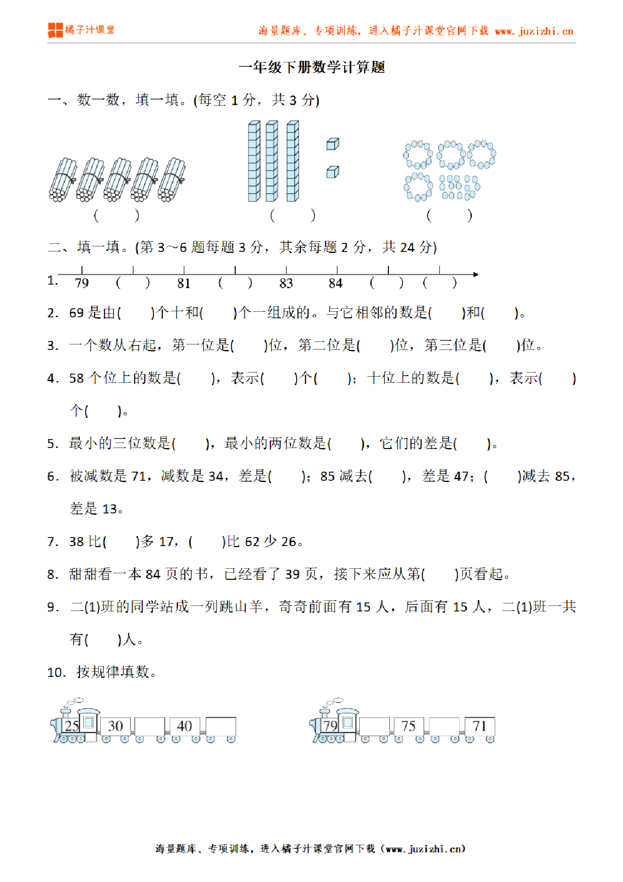 这份资料:《【北师大版数学】一年级下册专项练习《计算题》测试卷》由【橘子汁课堂】整理提供,各位家长老师可直接在线下载,下载后使用打印机打印使用。也可以保存下方练习题图片打印,提供给学生可直接练习。 同时,我们也提供了手机端练习工具,可以使用手机扫描右侧卡片二维码,进入我们的题库小程序练习。