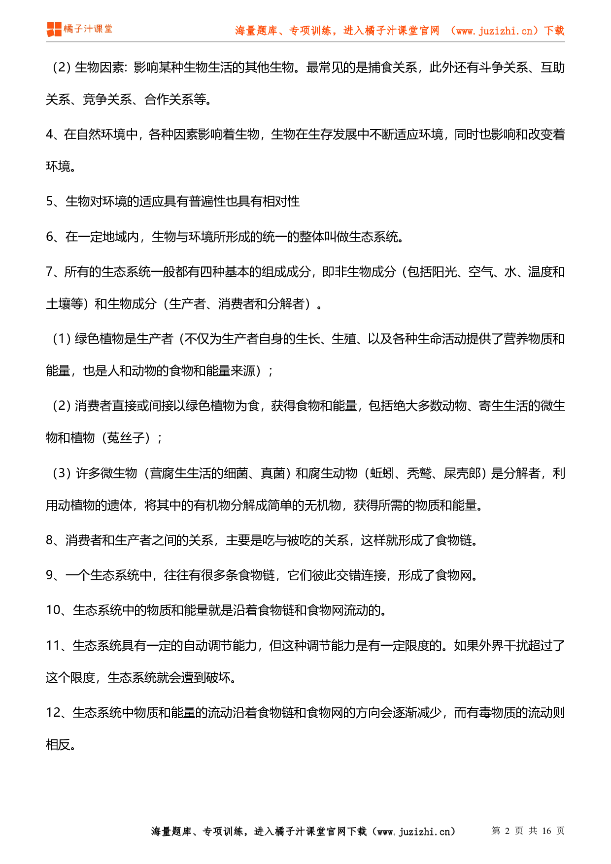 这份资料:【人教版】初中生物七年级上册知识点汇总由【橘子汁课堂】整理提供,各位家长老师可直接在线下载,下载后使用打印机打印使用。也可以保存下方练习题图片打印,提供给学生可直接练习。 同时,我们也提供了手机端练习工具,可以使用手机扫描右侧卡片二维码,进入我们的题库小程序练习。