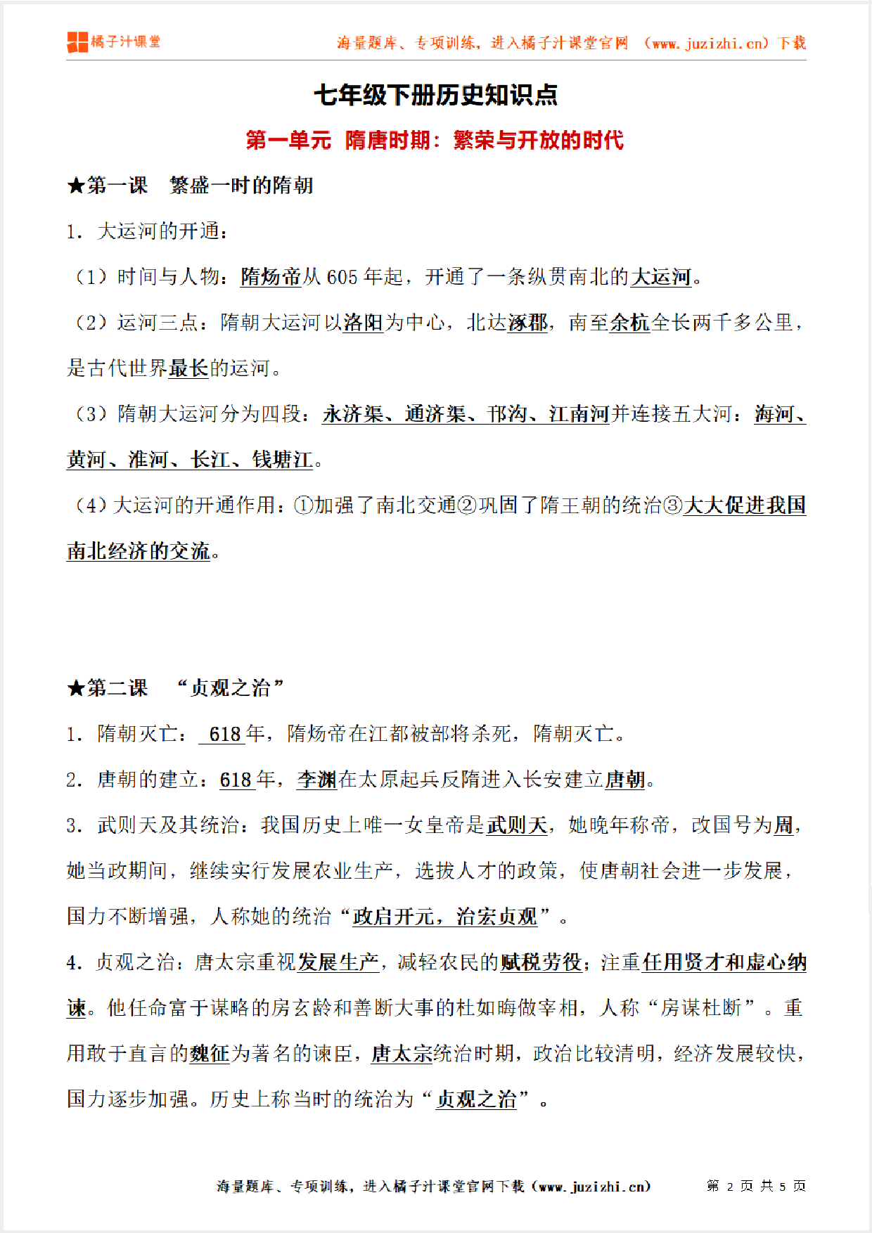 这份资料:七年级下册初中历史《第一单元 隋唐时期:繁荣与开放的时代》单元知识点由【橘子汁课堂】整理提供,各位家长老师可直接在线下载,下载后使用打印机打印使用。也可以保存下方练习题图片打印,提供给学生可直接练习。 同时,我们也提供了手机端练习工具,可以使用手机扫描右侧卡片二维码,进入我们的题库小程序练习。