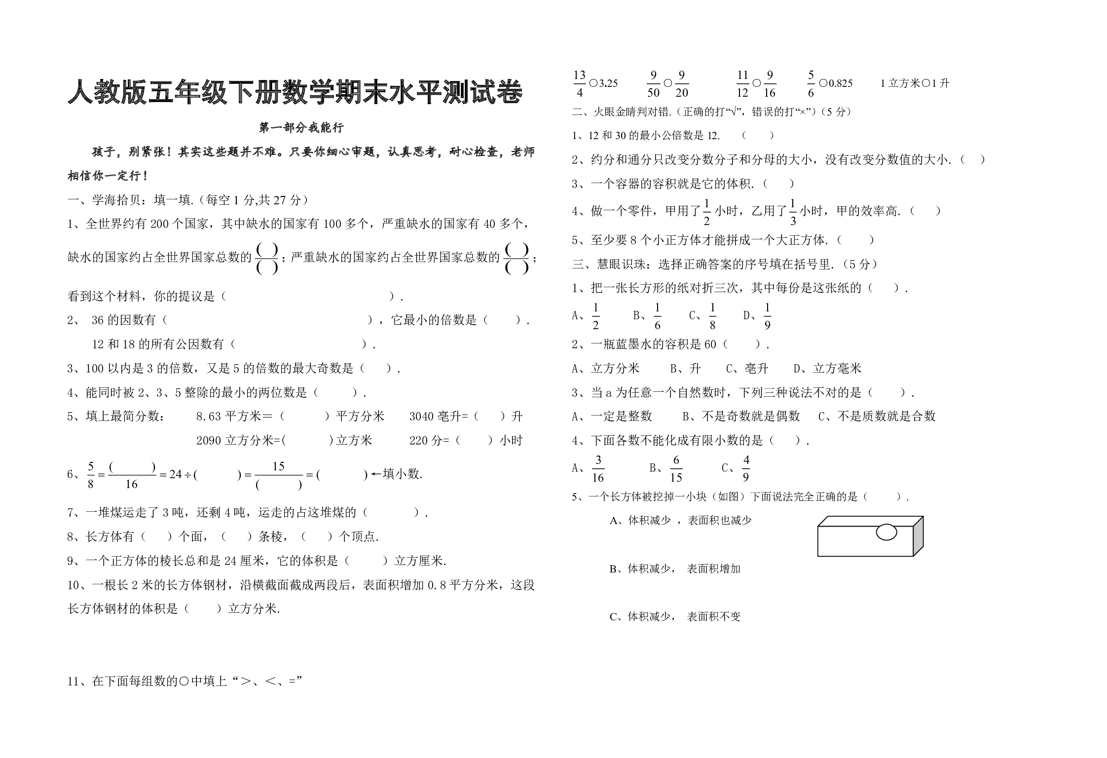 这份资料:五年级数学下册期末测试卷4(人教版)由【橘子汁课堂】整理提供,各位家长老师可直接在线下载,下载后使用打印机打印使用。也可以保存下方练习题图片打印,提供给学生可直接练习。 同时,我们也提供了手机端练习工具,可以使用手机扫描右侧卡片二维码,进入我们的题库小程序练习。