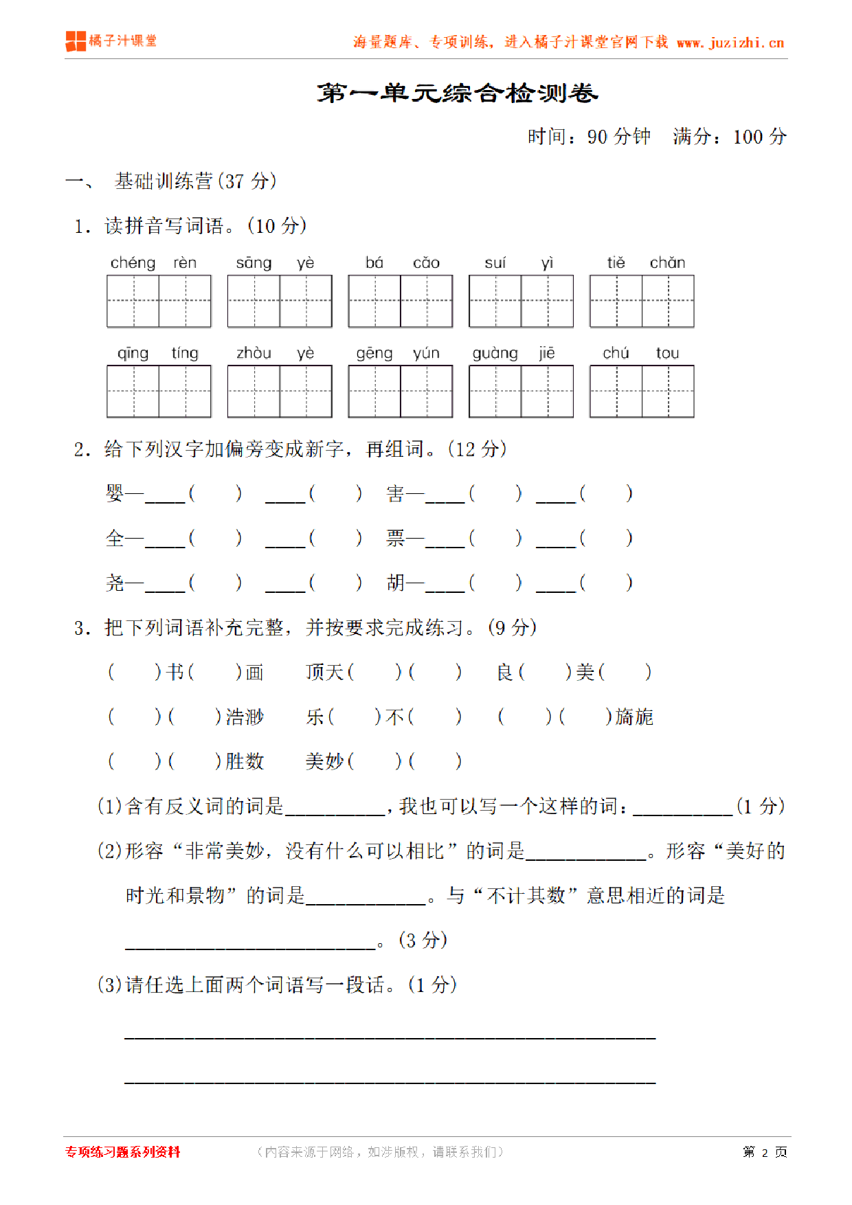 这份资料:【部编版语文】五年级下册第一单元检测卷(含答案)由【橘子汁课堂】整理提供,各位家长老师可直接在线下载,下载后使用打印机打印使用。也可以保存下方练习题图片打印,提供给学生可直接练习。 同时,我们也提供了手机端练习工具,可以使用手机扫描右侧卡片二维码,进入我们的题库小程序练习。