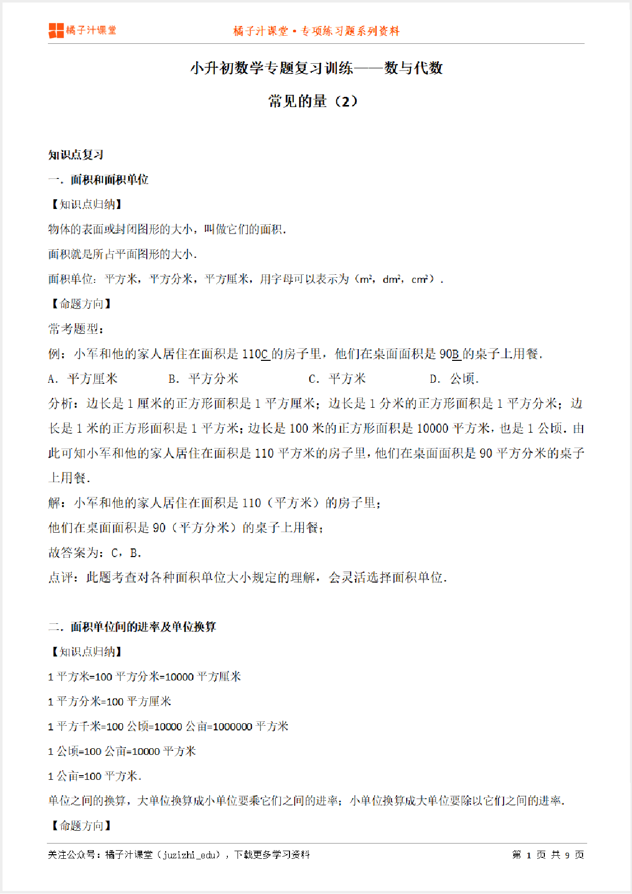 这份资料:小升初数学专题复习训练—数与代数:常见的量(2)知识点归纳汇总+例题讲解由【橘子汁课堂】整理提供,各位家长老师可直接在线下载,下载后使用打印机打印使用。也可以保存下方练习题图片打印,提供给学生可直接练习。 同时,我们也提供了手机端练习工具,可以使用手机扫描右侧卡片二维码,进入我们的题库小程序练习。
