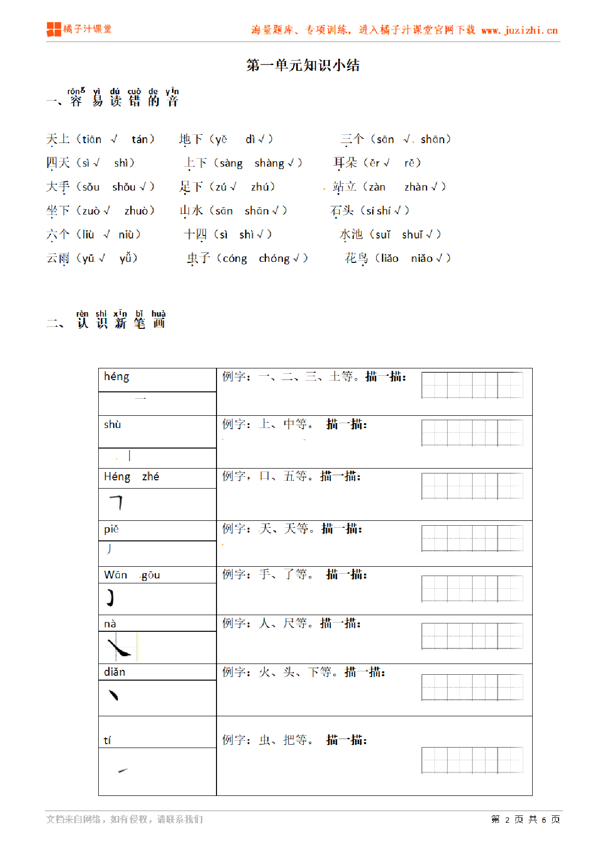 这份资料:【部编版】小学语文一年级上册第一单元知识点归纳由【橘子汁课堂】整理提供,各位家长老师可直接在线下载,下载后使用打印机打印使用。也可以保存下方练习题图片打印,提供给学生可直接练习。 同时,我们也提供了手机端练习工具,可以使用手机扫描右侧卡片二维码,进入我们的题库小程序练习。